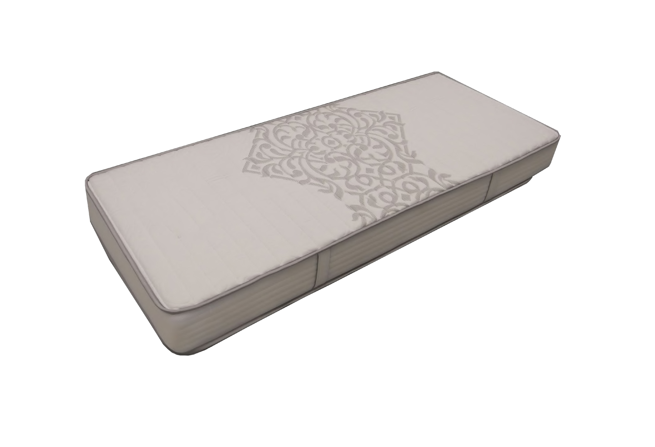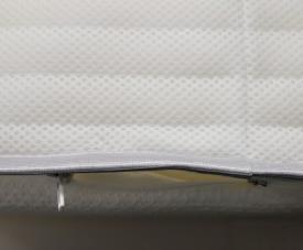 - Coutil stretch 150 g + 250 g de fibre (ouate 100% polyester) sur les deux faces de couchage + sur 14 mm de mousse 100% polyuréthane 20 kg/m3 , piqués sur la face supérieure