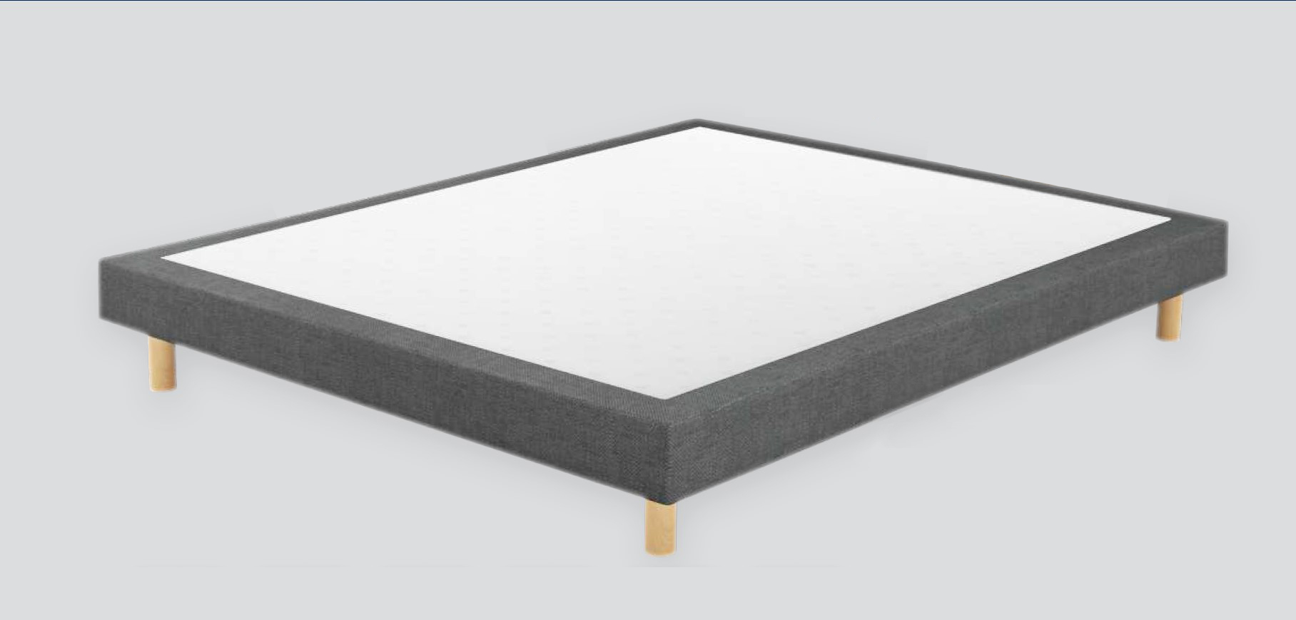 Bois massif, Lattes passives, Toile de propreté, 4 inserts d’angle ØM8, Ouate polyester, Bande plateau cousue, 5 ans de garantie